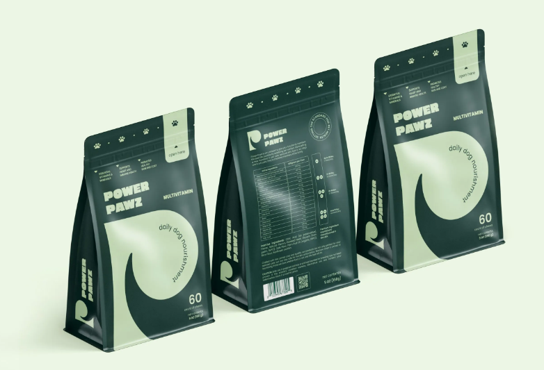 隨著寵物行業(yè)的快速發(fā)展,寵物食品和保健品市場(chǎng)日益龐大,消費(fèi)者對(duì)寵物健康的關(guān)注也達(dá)到了前所未有的高度。Power Pawz作為一個(gè)創(chuàng)新的寵物品牌,致力于提供科學(xué)配方的寵物食品和補(bǔ)充劑,以提升寵物的健康與活力。在這個(gè)背景下,Power Pawz的貓糧包裝設(shè)計(jì)不僅要在視覺上吸引消費(fèi)者的目光,還要在功能性和實(shí)用性上體現(xiàn)品牌的理念——為寵物提供最好的健康保障。包裝設(shè)計(jì)既要符合現(xiàn)代寵物主人的審美需求,又要簡(jiǎn)潔、易懂地傳達(dá)產(chǎn)品的價(jià)值。